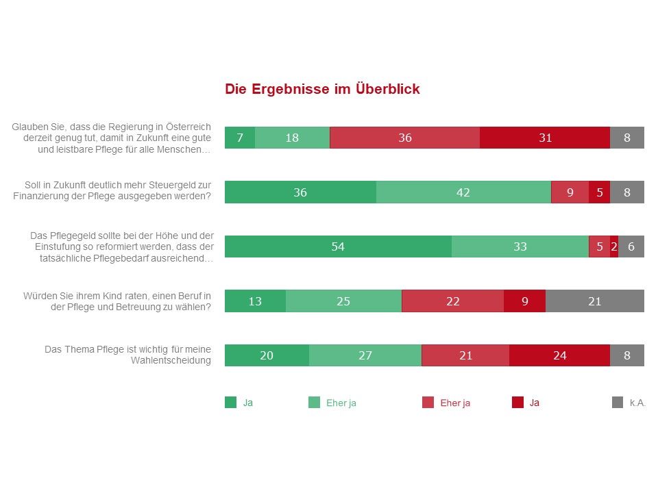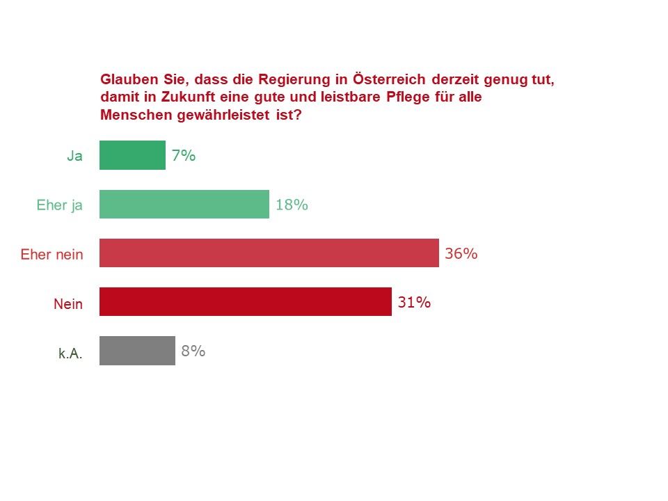 „Die Menschen in Österreich wünschen sich noch mehr Engagement von der Regierung, und sie stimmen in hohem Maß der Forderung nach mehr Ausgaben für den Pflegebereich zu. Diese Erkenntnis sollten alle Parteien in ihren Wahlprogrammen berücksichtigen“, so Fenninger.